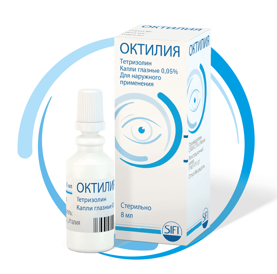 Октилия используется в комплексной терапии при лечении заболеваний глаз, сопровождающихся симптомами раздражения, вызванных аллергическими, химическими и физическими факторами (дым, пыль, сильное освещение, отражение света от снежных и водных поверхностей, от излучающих экранов мониторов).