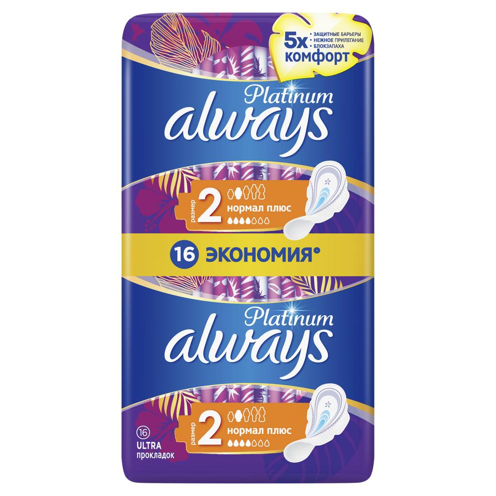 Always Platinum Нормал Плюс (Размер 2) с крылышками рекомендованы для дневного использования при скудных и умеренных выделениях.