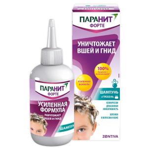 Шампунь Паранит Форте Усиленная Формула прошёл исследования, которые подтвердили его эффективность. Средство обладает формулой двойного действия: удушает и обезвоживает вшей, их личинки и гниды. Кроме того, Шампунь Паранит Форте Усиленная Формула удобно использовать: уничтожить вшей и гнид так же просто, как вымыть голову, а содержащиеся в нем кондиционирующие добавки облегчают удаление вшей гребнем. Шампунь Паранит Форте Усиленная Формула не содержит инсектицидов, поэтому у вшей не развивается к нему устойчивость.