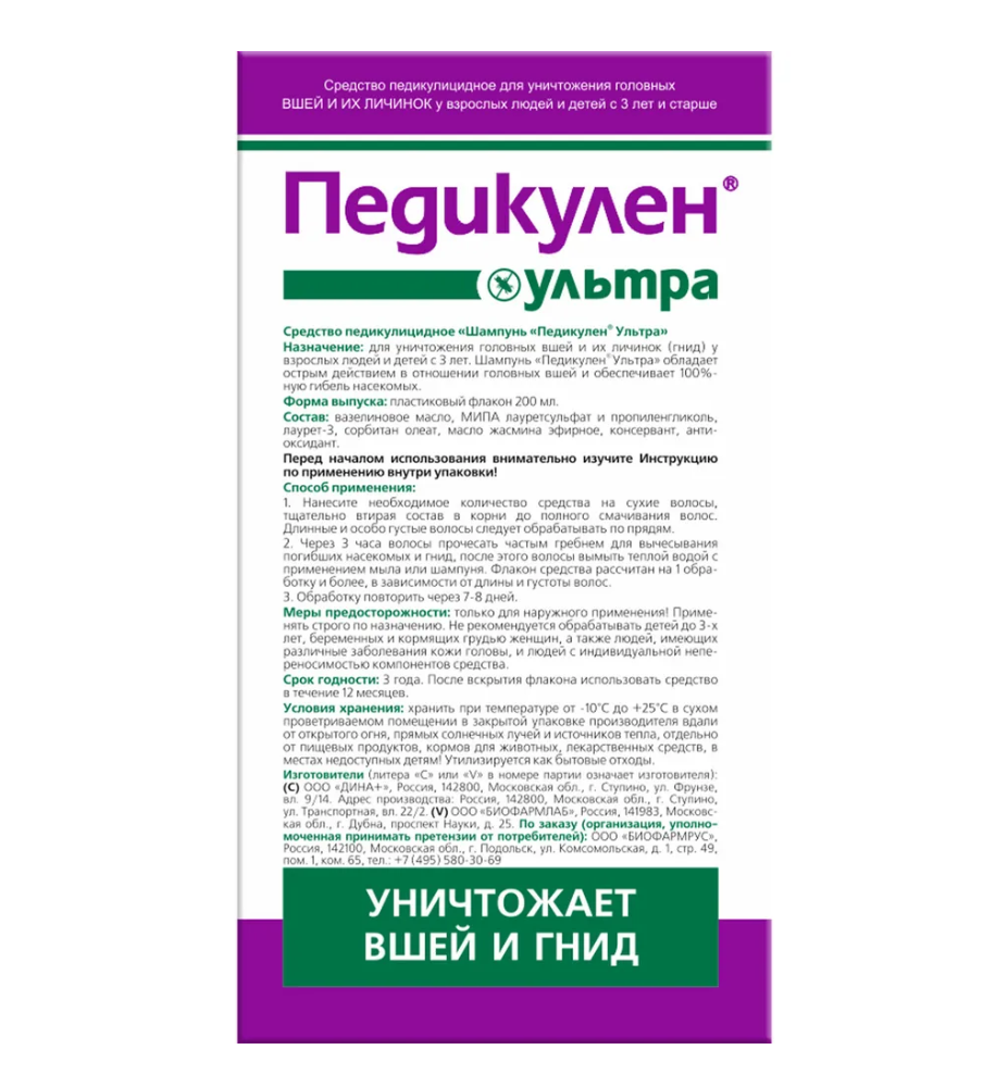 Педикулен ультра шампунь педикулицидный флакон 200мл