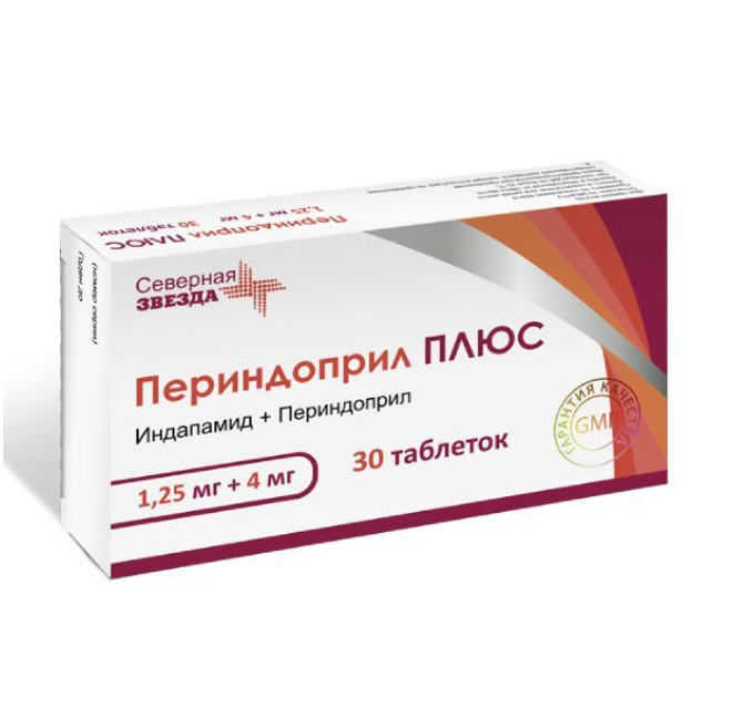 Периндоприл Плюс таблетки 1,25мг+4мг №30