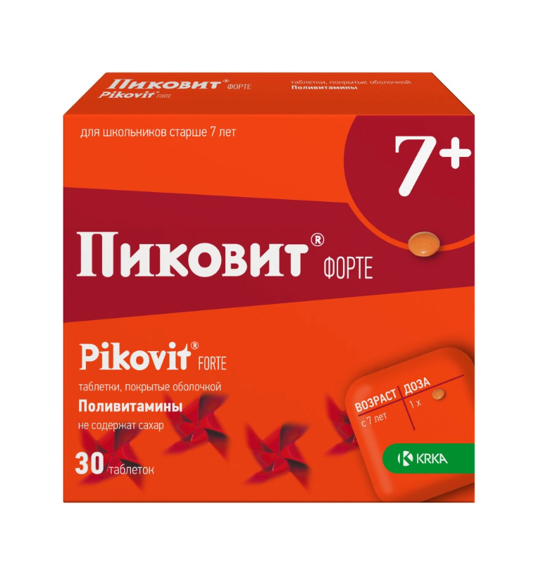 ПИКОВИТ® ФОРТЕ содержит 11 наиболее важных витаминов в количествах, соответствующих рекомендуемым дозам для детей в возрасте от 7 лет и старше.