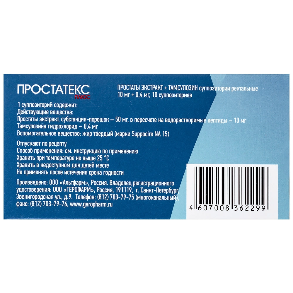 Простатекс Плюс суппозитории ректальные 10мг+0,4мг №10
