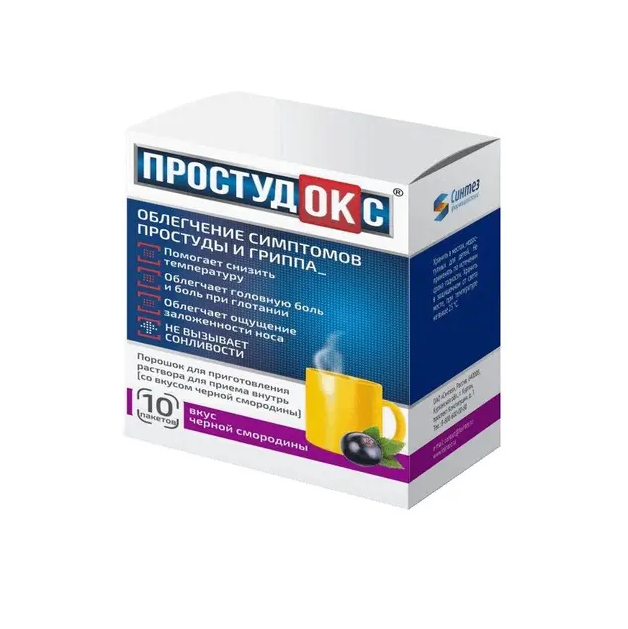 Простудокс® обеспечивает эффективное облегчение симптомов «простуды» и гриппа, таких как повышенная температура, головная боль, озноб, ощущение заложенности носа, боль при глотании.