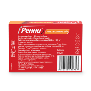 Без указания врача не следует превышать максимальную суточную дозу кальция карбоната, равную 8 г (соответствует 11 таблеткам препарата Ренни®), или применять препарат в максимальной суточной дозе непрерывно более 2 недель.