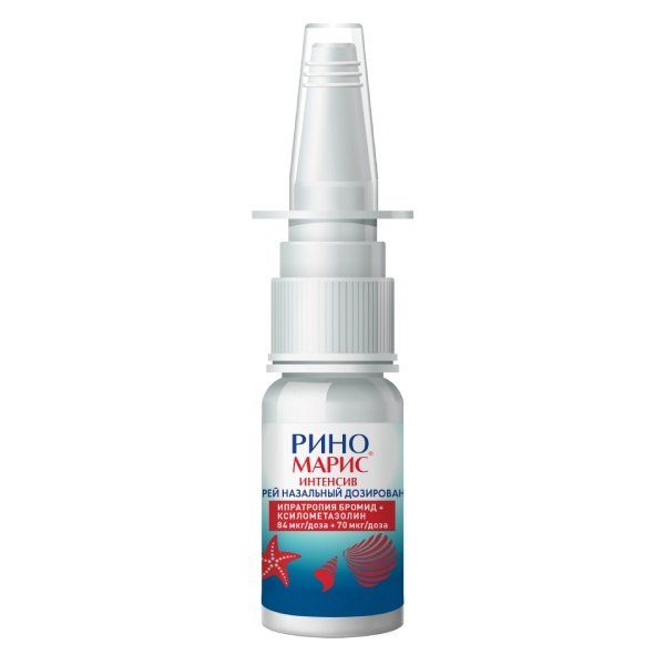 Риномарис Интенсив спрей назальный дозированный 84мкг/доза+70мкг/доза флакон 85доз (15мл)