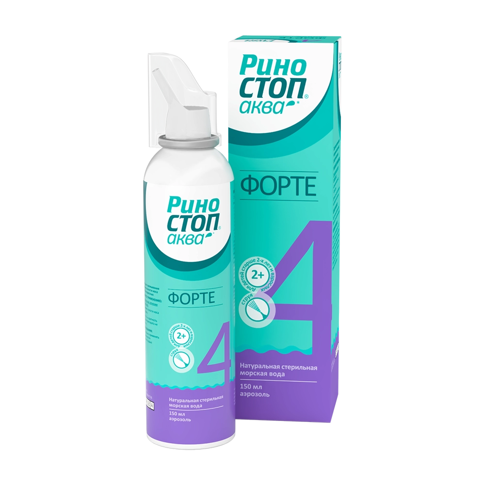 Риностоп Аква* Форте — это средство, разработанное специально для применения при сильной заложенности носа, гипертоническая концентрация морской воды обеспечивает уменьшение отека слизистой оболочки полости носа благодаря удалению избыточной жидкости из полости носа.