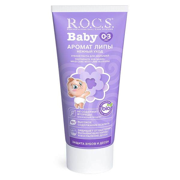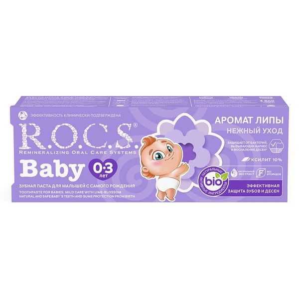 Зубная паста R.O.C.S. Baby предназначена для ухода за зубами малышей, начиная с самого раннего возраста и до 3-х лет.