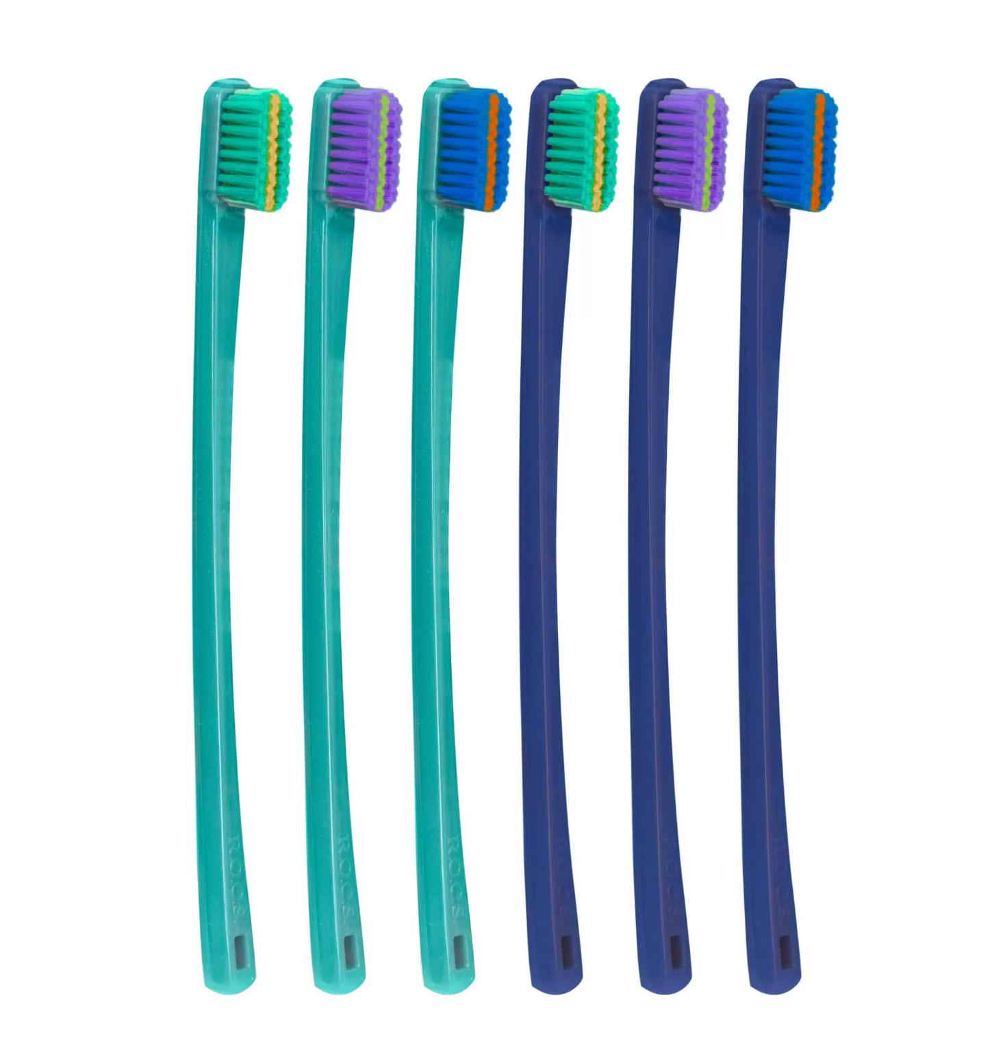 - Количество щетинок в РОКС ПРО «Brackets & Ortho» - 5940, что в 3 раза больше, чем в классических моделях щеток для зубов R.O.C.S. Каждая ворсинка, используемая в изделиях, закругляется и подвергается тройной полировке, не допуская образования царапин и травмирования мягких тканей рта.
