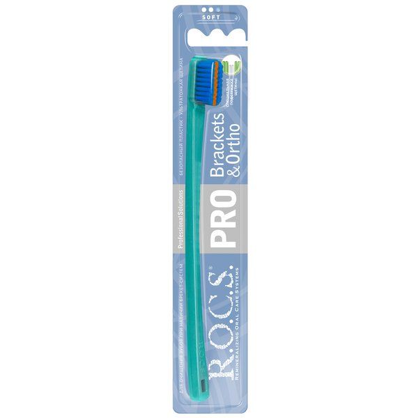 Новая мягкая зубная щетка R.O.C.S. PRO «Brackets & Ortho» разработана для обеспечения профессионального ухода за полостью рта при использовании ортопедических и ортодонтических конструкций. Щетка качественно удаляет зубной налет с эмали, брекетов и т.д., не царапая их и не повреждая десны.