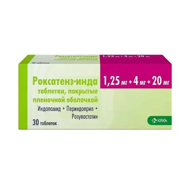 Роксатенз-инда таблетки покрытые плёночной оболочкой 1,25мг+4мг+20мг №30
