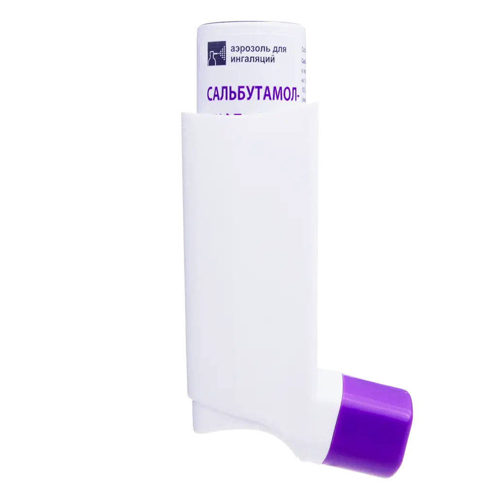 Активное вещество: ;сальбутамола сульфат микронизированный (в пересчёте на 100 ;% безводное вещество) — 0,030125 ;г (эквивалентно 0,025 ;г сальбутамола) / 120,5 ;мкг (эквивалентно 100 ;мкг сальбутамола);