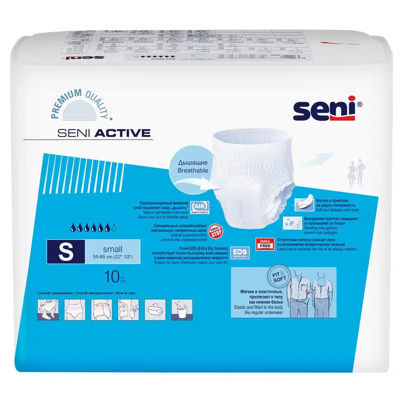 Сени active small впитывающие трусы для взрослых объем в поясе 55-85см №10