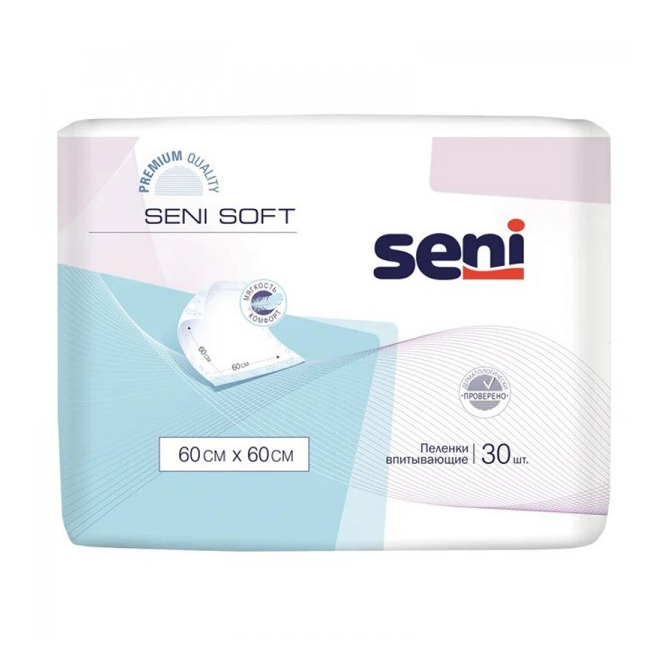 Пеленки Seni Soft всегда пригодятся, если у вас появился малыш. Впитывающим слоем этих пеленок является распушенная целлюлозная пульпа. Верхний слой выполнен из мягкого, приятного на ощупь нетканого материала, а нижний слой из водонепроницаемой нескользящей пленки, которая предотвращает перемещение пеленки на постели и защищает от протекания. Пеленки Seni Soft можно также использовать для ухода за больными, страдающими различными формами недержания.