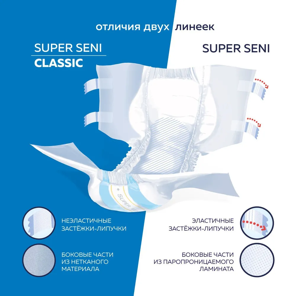 Сени super classic extra large подгузники для взрослых обхват талии и бедер 130-170см №30