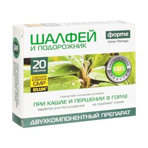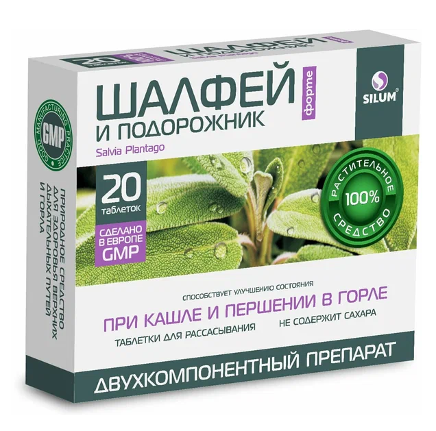 ШАЛФЕЙ И ПОДОРОЖНИК ФОРТЕ SILUM таб.№20 - это 100 % растительный препарат для здоровья верхних дыхательных путей и полости рта.