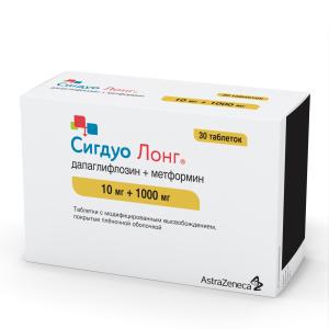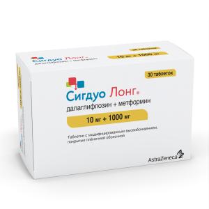 Сигдуо лонг таблетки с модифицированным высвобождением покрытые плёночной оболочкой 10мг+1000мг №30