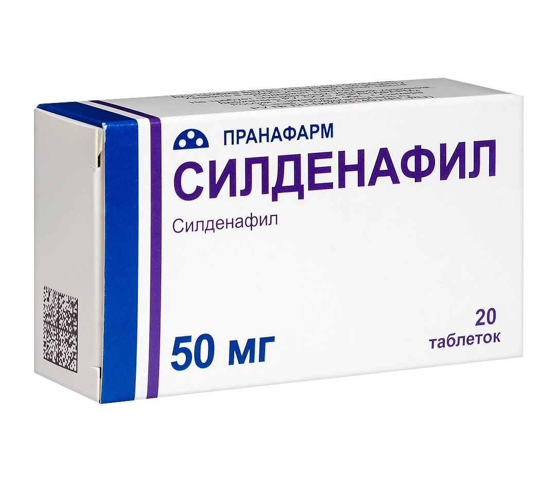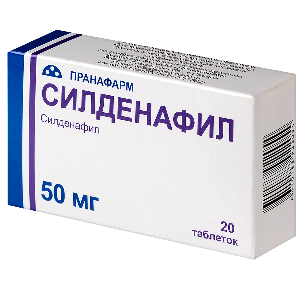 Силденафил таблетки покрытые плёночной оболочкой 50мг №20