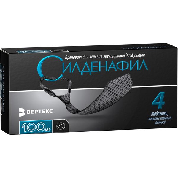Силденафил Вертекс таблетки покрытые плёночной оболочкой 100мг №4