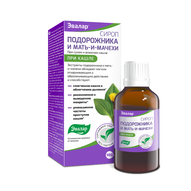 "Сироп подорожника и мать-и-мачеха" от компании Эвалар – это растительный препарат, который обладает мягким отхаркивающим действием и способствует: