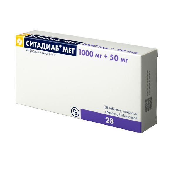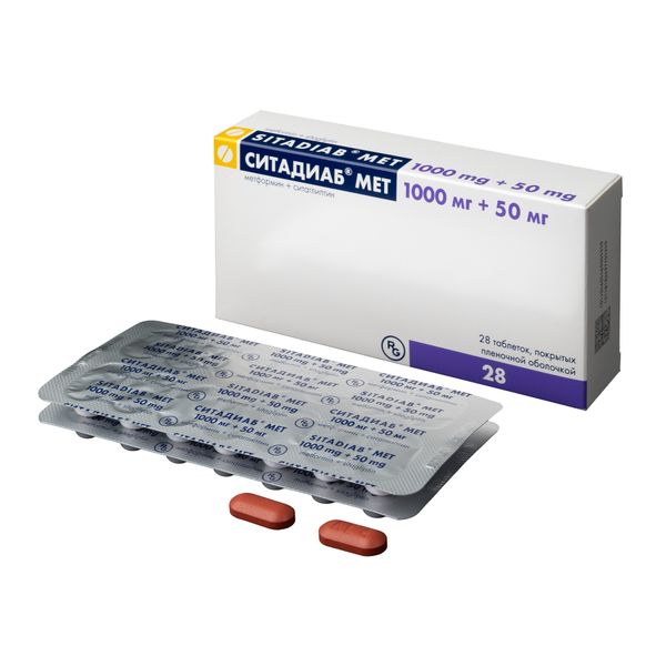 Ситадиаб Мет таблетки покрытые пленочной оболочкой 1000мг+50мг №28