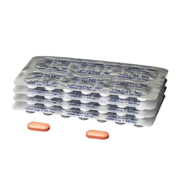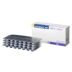 Препарат Ситадиаб® ;Мет, 1000 мг+50 мг, содержит действующие вещества: