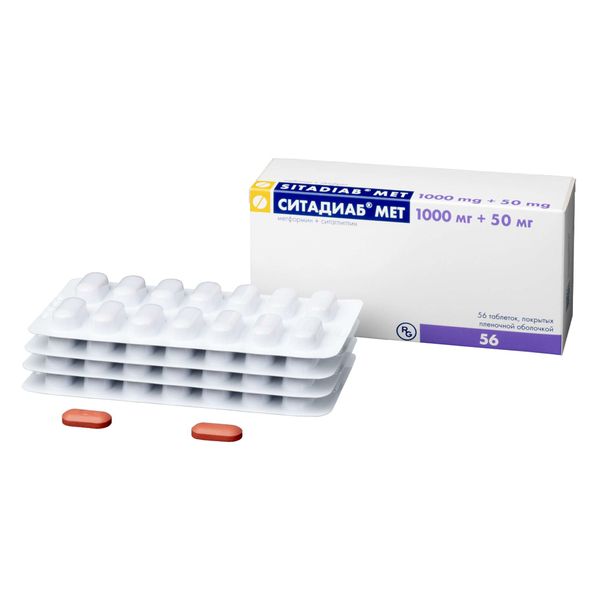 Ситадиаб Мет таблетки покрытые пленочной оболочкой 1000мг+50мг №56