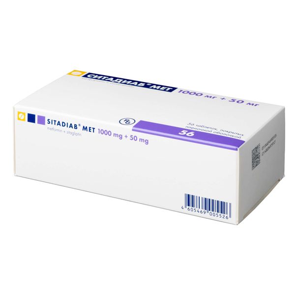 Ситадиаб® ;Мет, 1000 мг+50 мг, таблетки, покрытые плёночной оболочкой