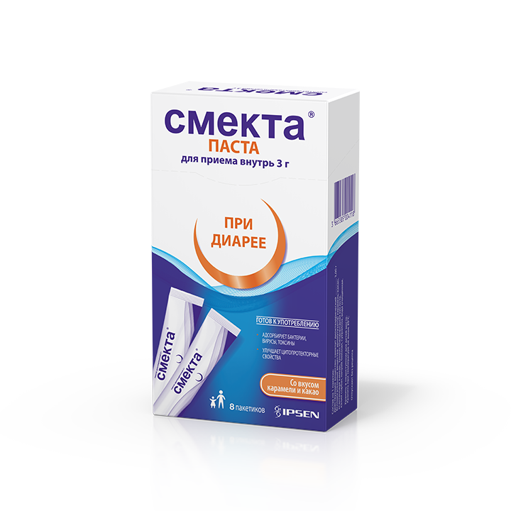 Активные вещества: смектит диоктаэдрический 3 г
