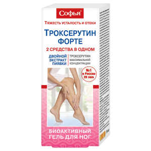Софья с экстрактом пиявки и троксерутином - натуральное эффективное средство, давно заслужившее доверие у миллионов российских женщин. Крем Софья обеспечивает комплексное решение и оказывает действенную помощь в поддержании красоты и здоровья ног, улучшает эстетический вид ног, микроциркуляцию и лимфоотток. снижает ломкость капилляров и риск возникновения трофических изменений.