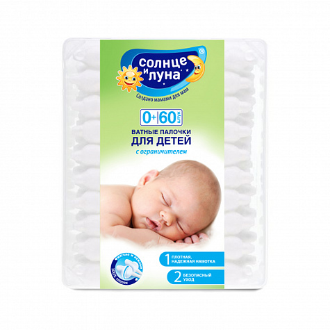 Сколько стоит Солнце и луна ватные палочки детские с ограничителем №60 - цена и отзывы
