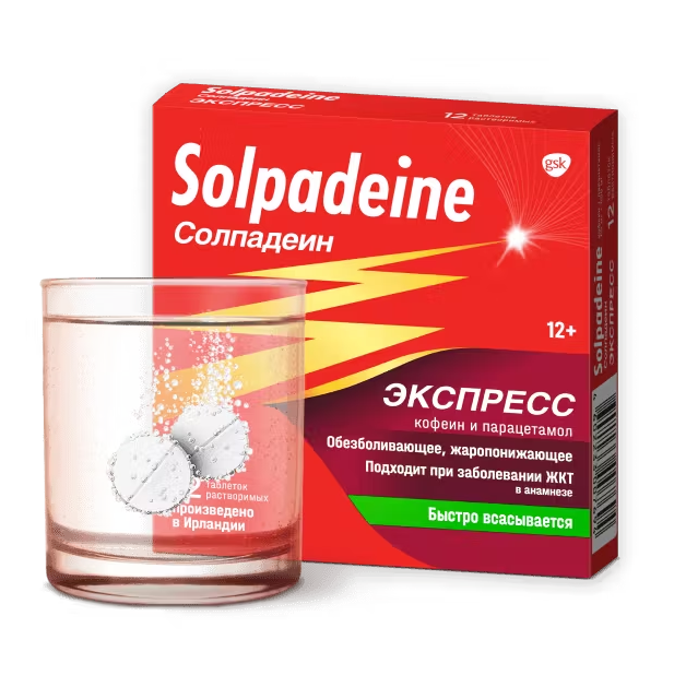 Солпадеин Экспресс таблетки растворимые 65мг+500мг №12