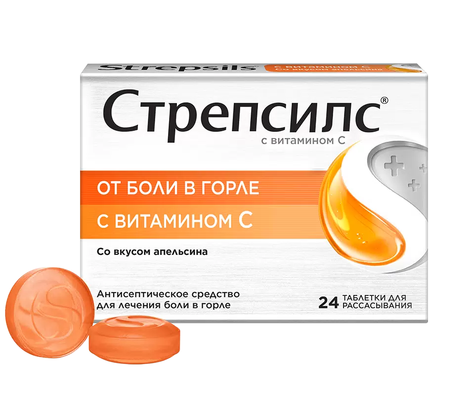 Стрепсилс с витамином С таблетки для рассасывания со вкусом апельсина №24