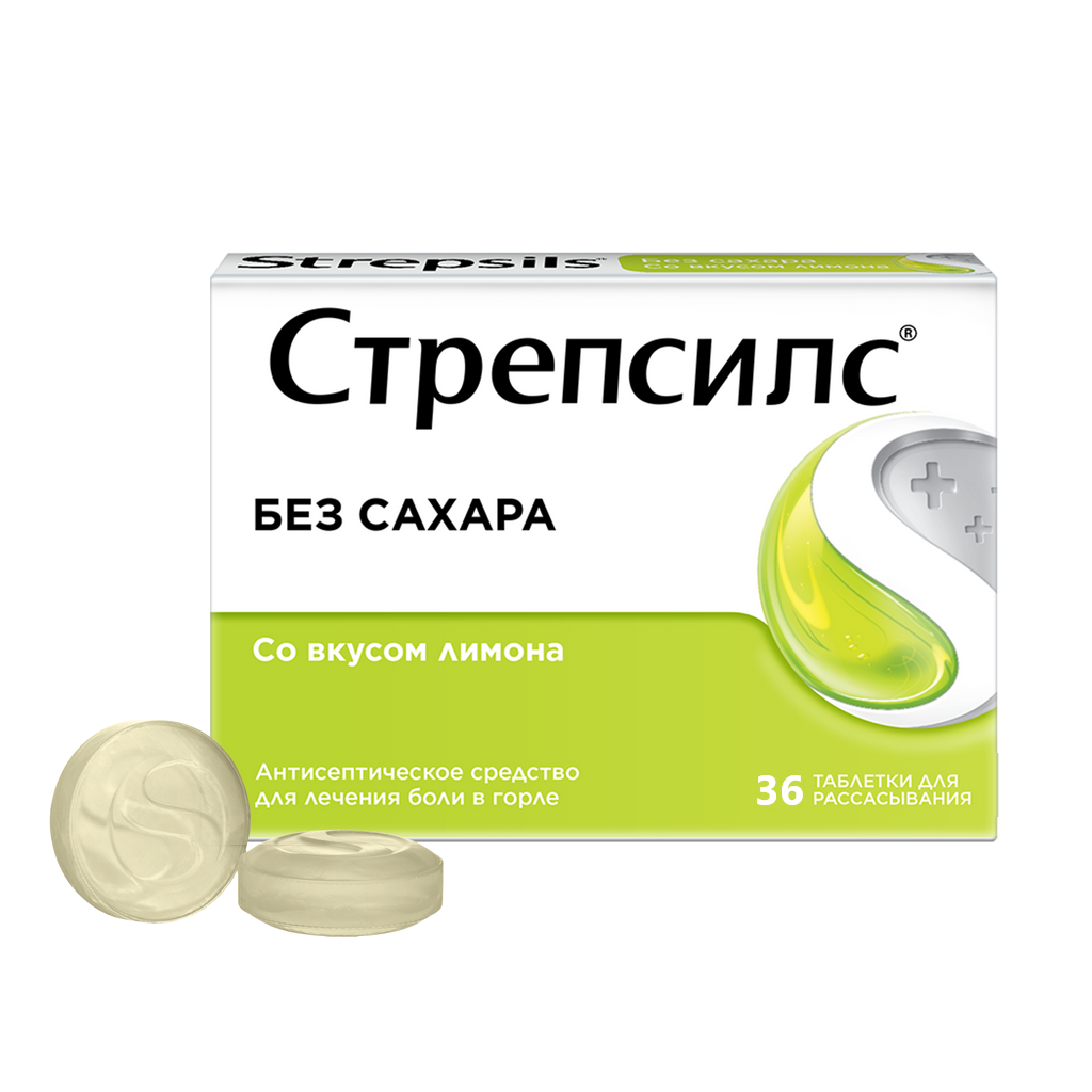 Стрепсилс таблетки для рассасывания со вкусом лимона без сахара №36