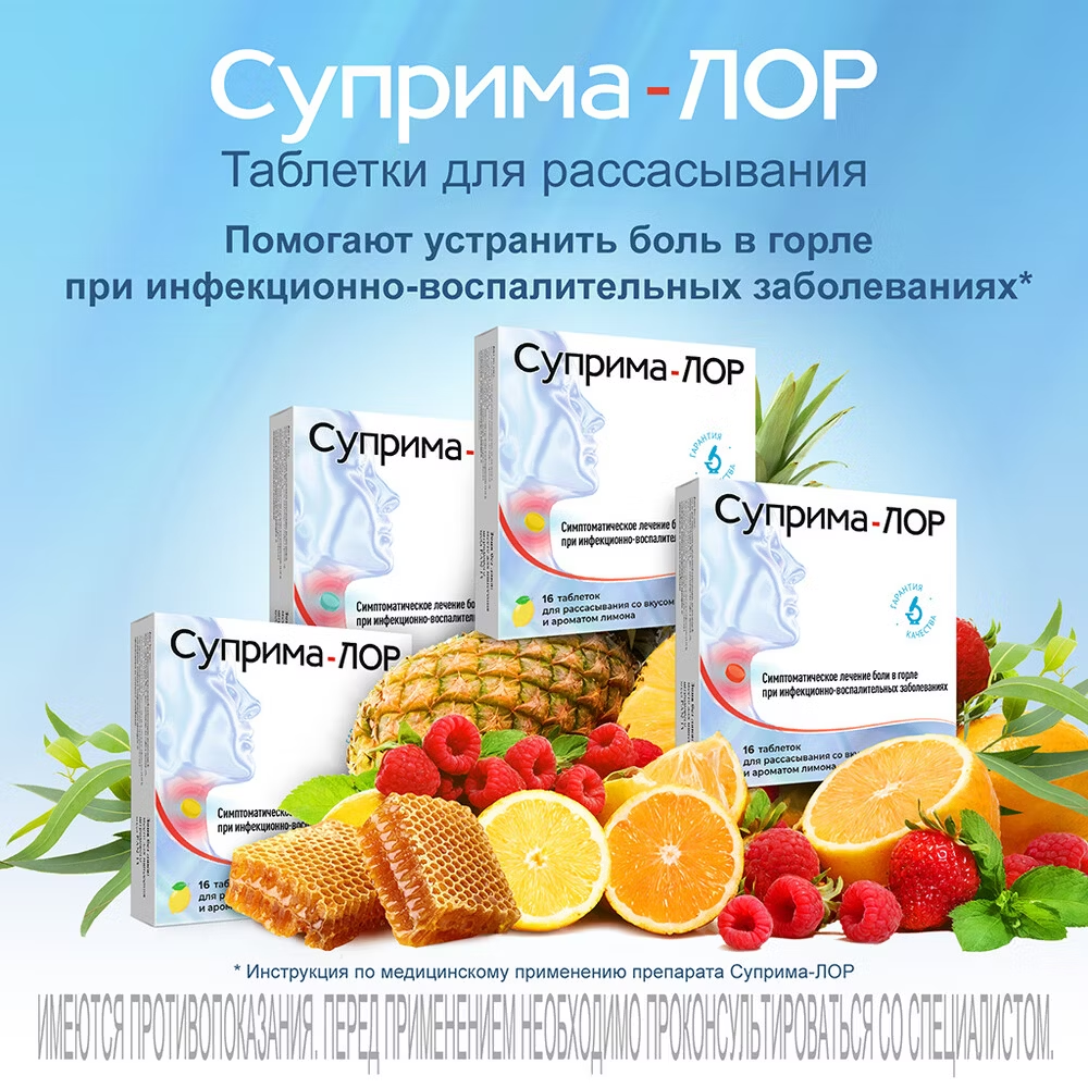 Препарат Суприма-ЛОР оказывает антисептическое действие, активен в отношении грамположительных и грамотрицательных микроорганизмов, обладает антимикотическим действием.