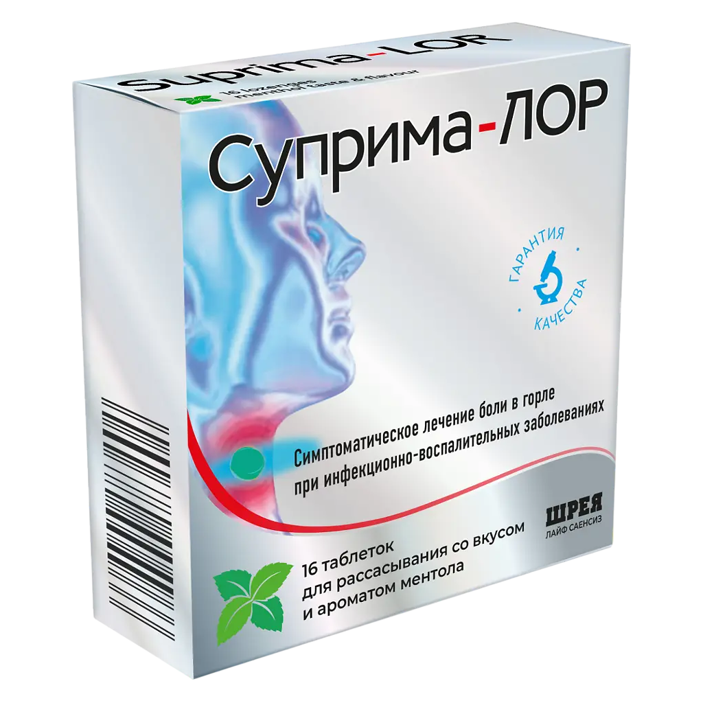 Суприма-Лор таблетки для рассасывания со вкусом и ароматом ментола 0,6мг+1,2мг №16