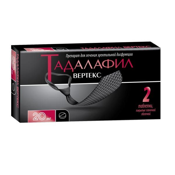 Тадалафил Вертекс таблетки покрытые плёночной оболочкой 20мг №2