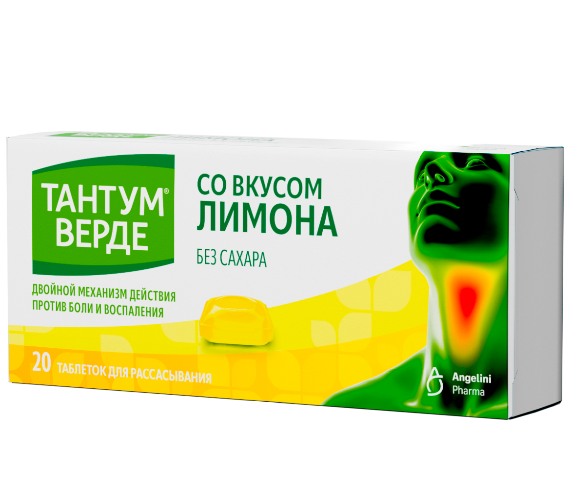 Тантум Верде таблетки для рассасывания со вкусом лимона 3мг №20