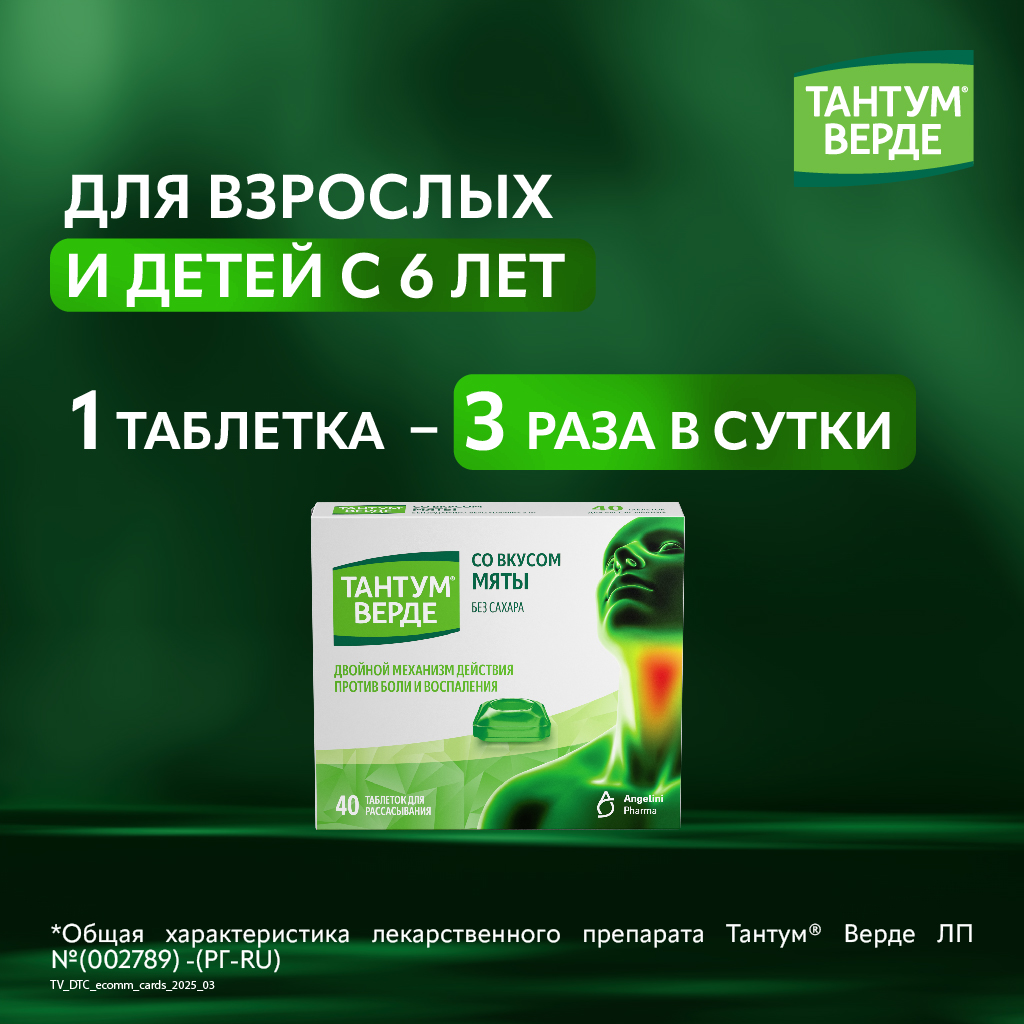 При применении препарата Тантум® Верде возможно развитие реакций гиперчувствительности. В этом случае рекомендуется прекратить лечение и проконсультироваться с врачом для назначения соответствующей терапии. У ограниченного числа пациентов присутствие язв в горле и полости рта может указывать на наличие более серьезной патологии. Если симптомы не проходят в течение более 3 дней, необходимо проконсультироваться с врачом. Применение препарата Тантум® Верде не рекомендуется у пациентов с повышенной чувствительностью к ацетилсалициловой кислоте или другим нестероидным противовоспалительным препаратам. Препарат Тантум® Верде должен с осторожностью применяться у пациентов с бронхиальной астмой в анамнезе по причине возможности развития у них бронхоспазма на фоне приема препарата. Препарат содержит изомальтозу и, в связи с этим, не рекомендуется у пациентов с наследственной непереносимостью фруктозы. Применение препарата у детей возможно только под наблюдением взрослых во избежание проглатывания таблетки.