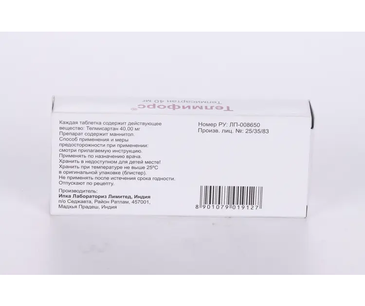 действующее вещество: телмисартан — 40 мг вспомогательные вещества: натрия гидроксид, меглумин, повидон К30, маннитол, магния стеарат.