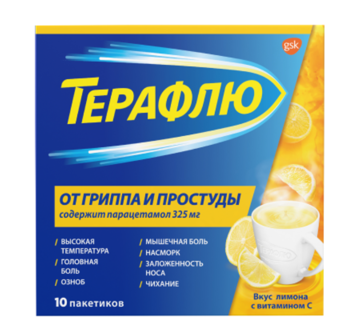 ТераФлю порошок для приготовления раствора для приема внутрь со вкусом лимона пакетики №10
