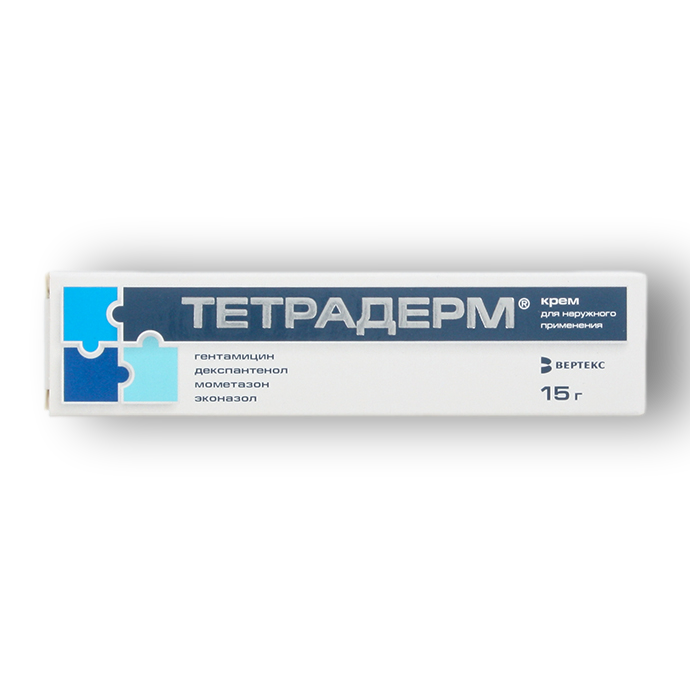 При длительном применении препарата Тетрадерм на обширных поверхностях кожи с нарушенной целостностью существует потенциальная возможность всасывания гентамицина и соответственно развития симптомов ототоксичности и других нежелательных явлений, характерных для гентамицина при его системном применении. Возможно развитие перекрестных аллергических реакций к антибиотикам из группы аминогликозидов.