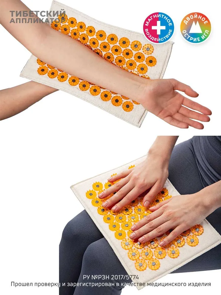 Тибетский аппликатор на мягкой подложке 17х28см магнитный желтый