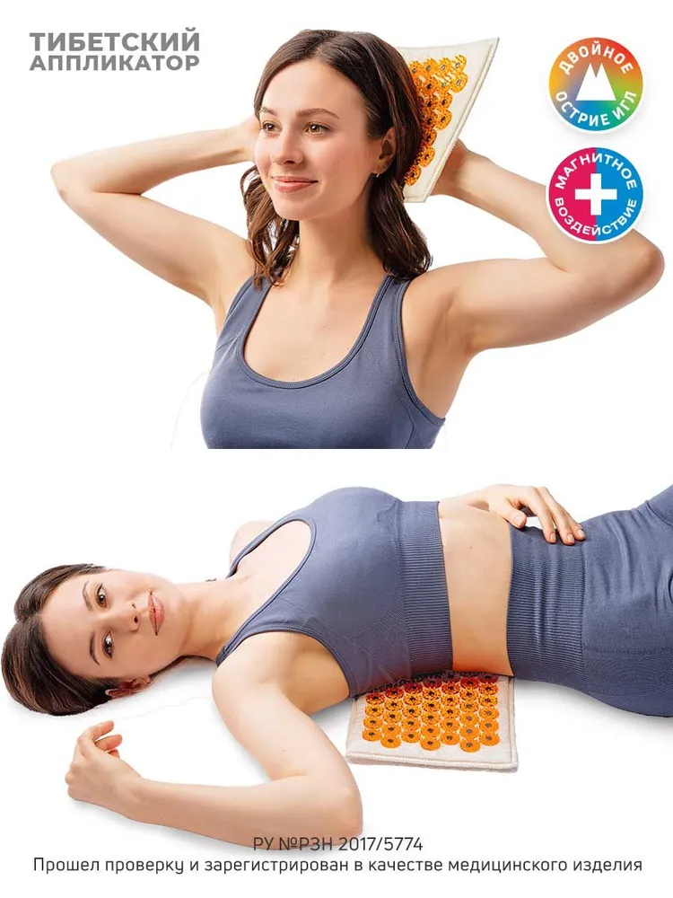 Тибетский аппликатор на мягкой подложке 17 x 28 см прижимается к поверхности кожи руками или с помощью веса тела. Возможно прижатие эластичным поясом или бинтом. Сила вдавливания должна обеспечить колющее воздействие в пределах болевой переносимости, которое обычно сопровождается ощущением тепла. Ощущение тепла свидетельствует о высокой эффективности воздействия. Время и сила воздействия являются индивидуальными для каждого человека и определяются опытным путем. Период воздействия может колебаться от одной минуты до нескольких часов, но в большинстве случаев процедура длится 5-15 минут. Рекомендуется проводить 1-2 процедуры в сутки. Проконсультируйтесь со специалистом об индивидуальных особенностях применения. Следующие способы применения эффективны в большинстве случаев: 1. Массажер кладут на горизонтальную поверхность (например, на кровать или на пол), затем на него ложатся, обеспечивая колющее воздействие с помощью веса тела. Процедура длится 5-15 минут. 2. Массажер накладывают на выбранную зону и надавливают на него руками в течение 40-60 секунд, после чего массажер снимают. Процедуру повторяют 5-10 раз с небольшими интервалами.