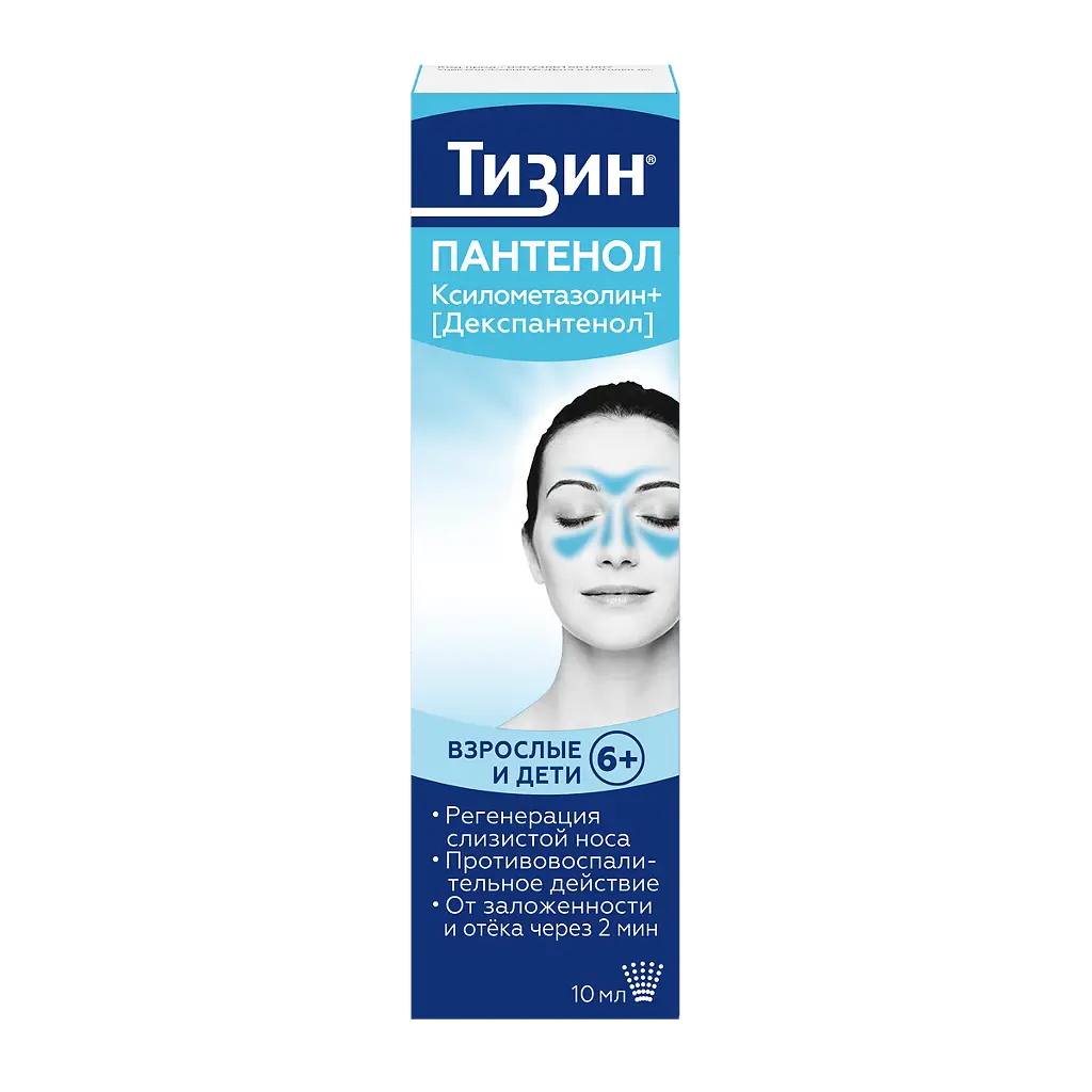 Тизин Пантенол спрей назальный дозированный 0,1мг+5мг/доза флакон 10мл