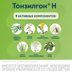Фармакологические свойства обусловлены биологически активными веществами, входящими в состав препарата. Тонзилгон® Н обладает противовоспалительным и антисептическим действием.