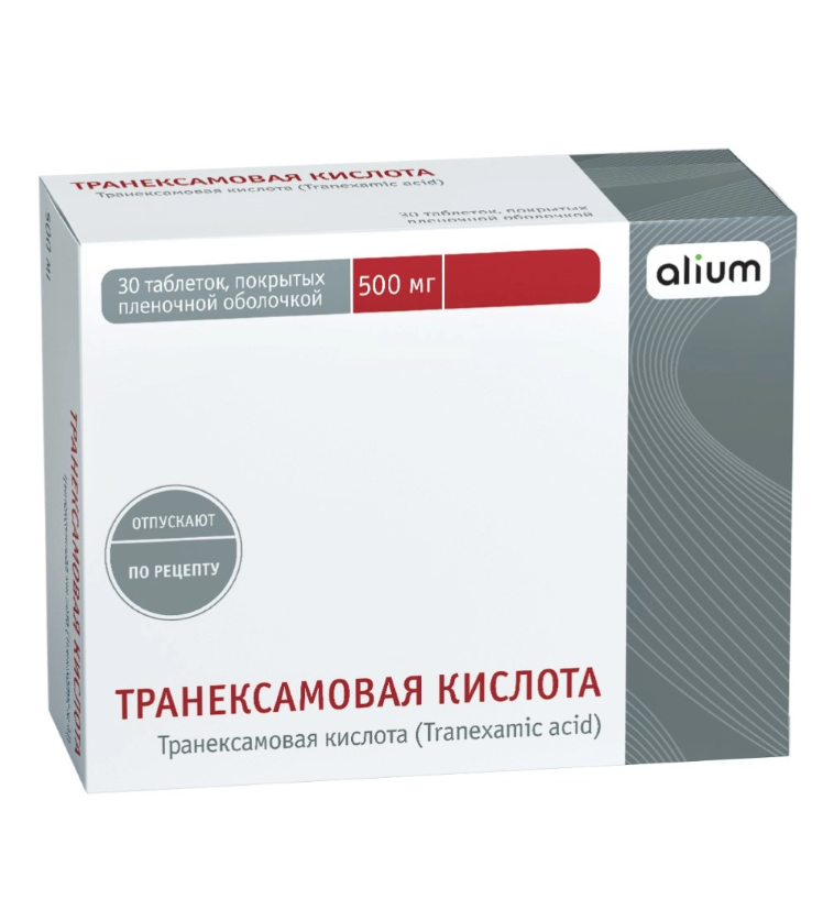 Каждая таблетка содержит 500 мг транексамовой кислоты.