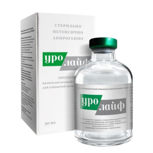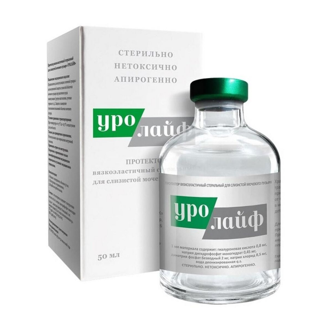 Протектор вязкоэластичный стерильный для слизистой мочевого пузыря «УРОЛАЙФ» - стерильный, апирогенный, прозрачный, упруговязкий, буферизованый, физиологический раствор гиалуроната натрия неживотного происхождения (рН 6,5 – 7,5). Поставляется в стеклянном герметично закрытом флаконе, в стерильном виде и предназначен только для инстилляций в мочевой пузырь.