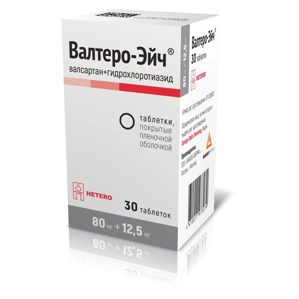 Препарат Валтеро-Эйч® — комбинированный гипотензивный препарат, в состав которого входят антагонист рецепторов ангиотензина II и тиазидный диуретик.