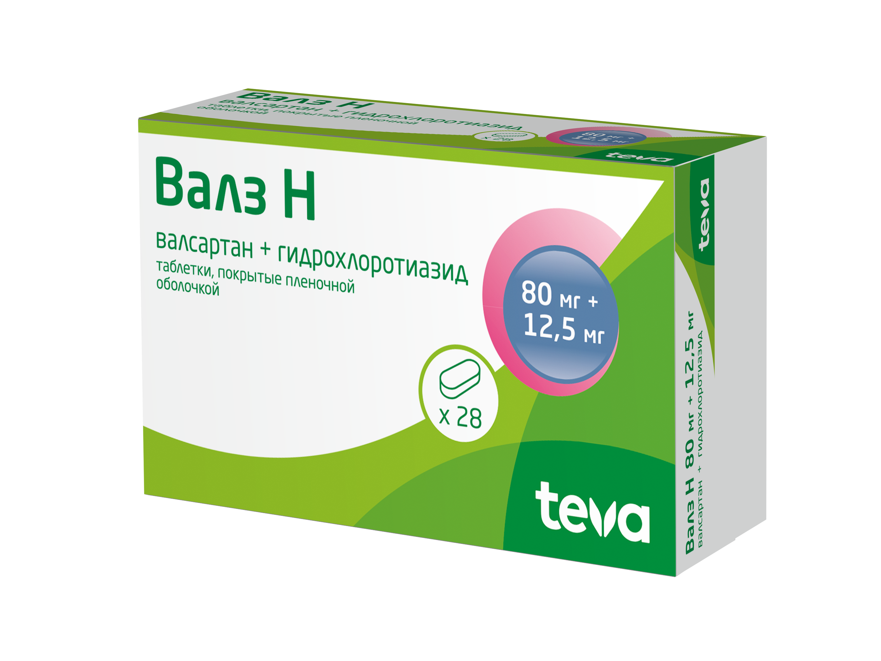 Валз Н таблетки покрытые пленочной оболочкой 80мг+12,5мг №28